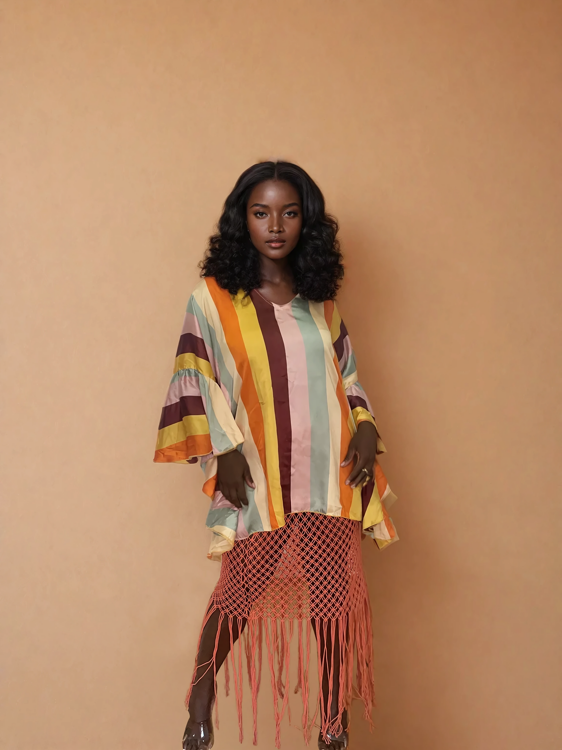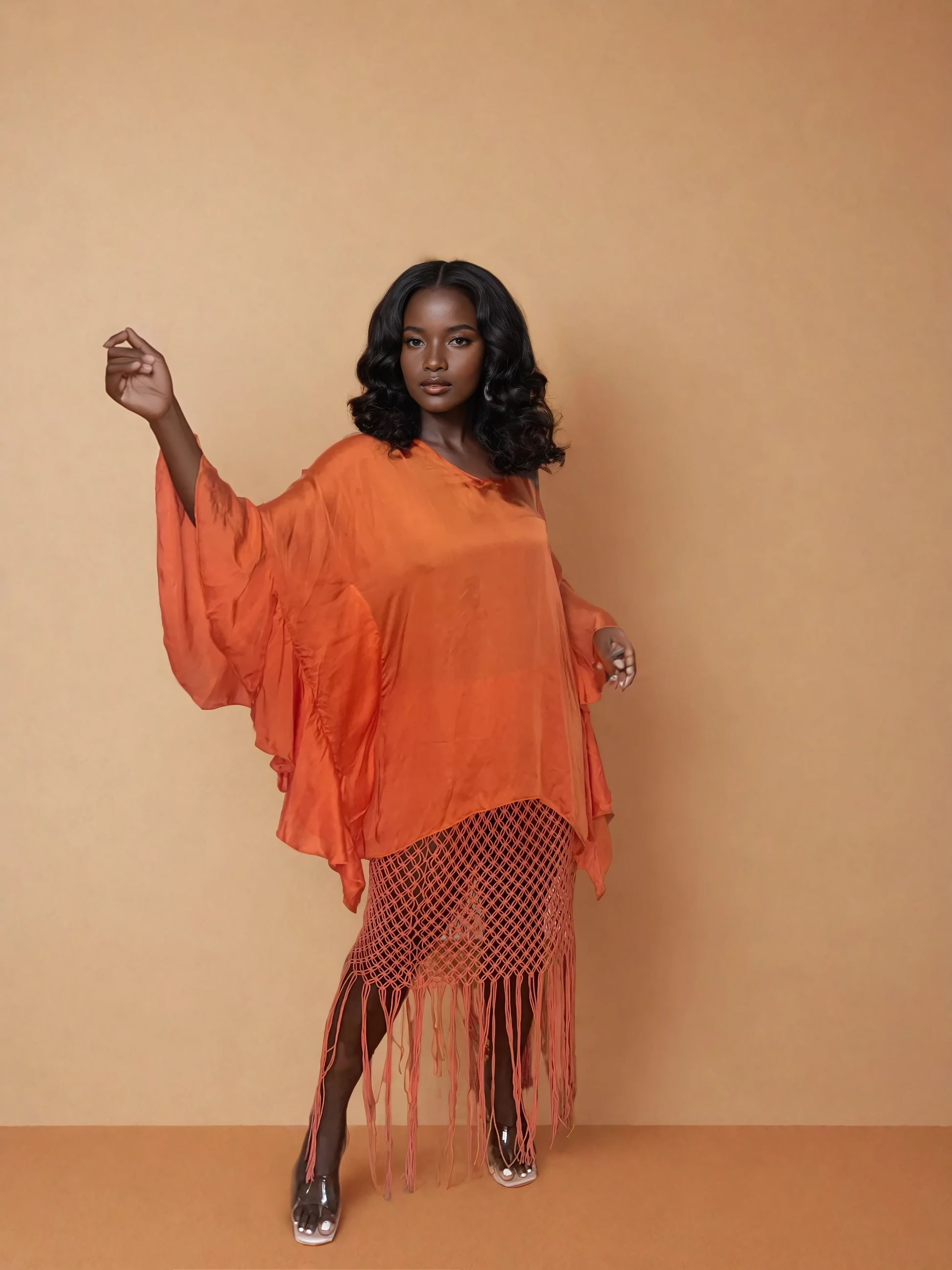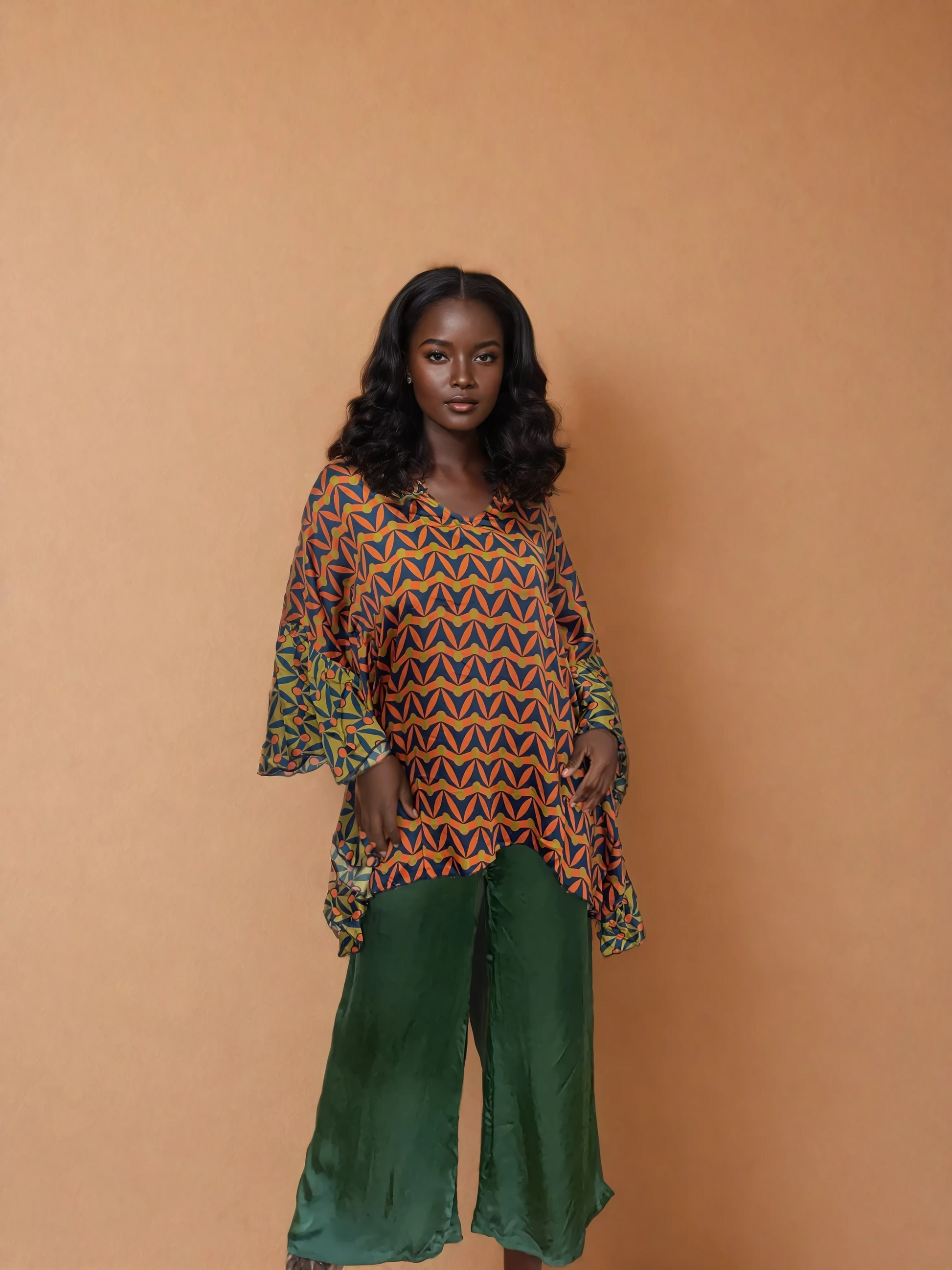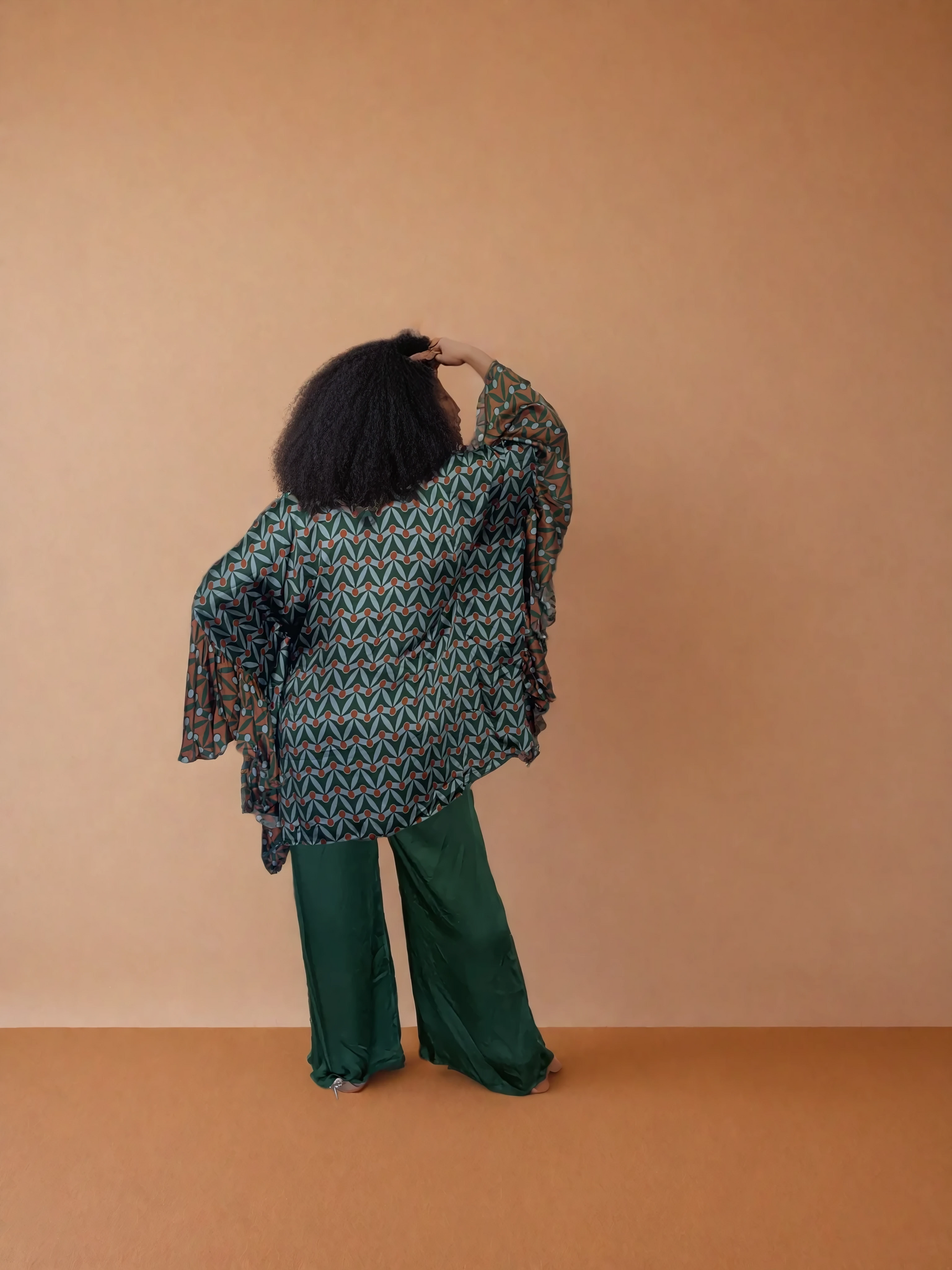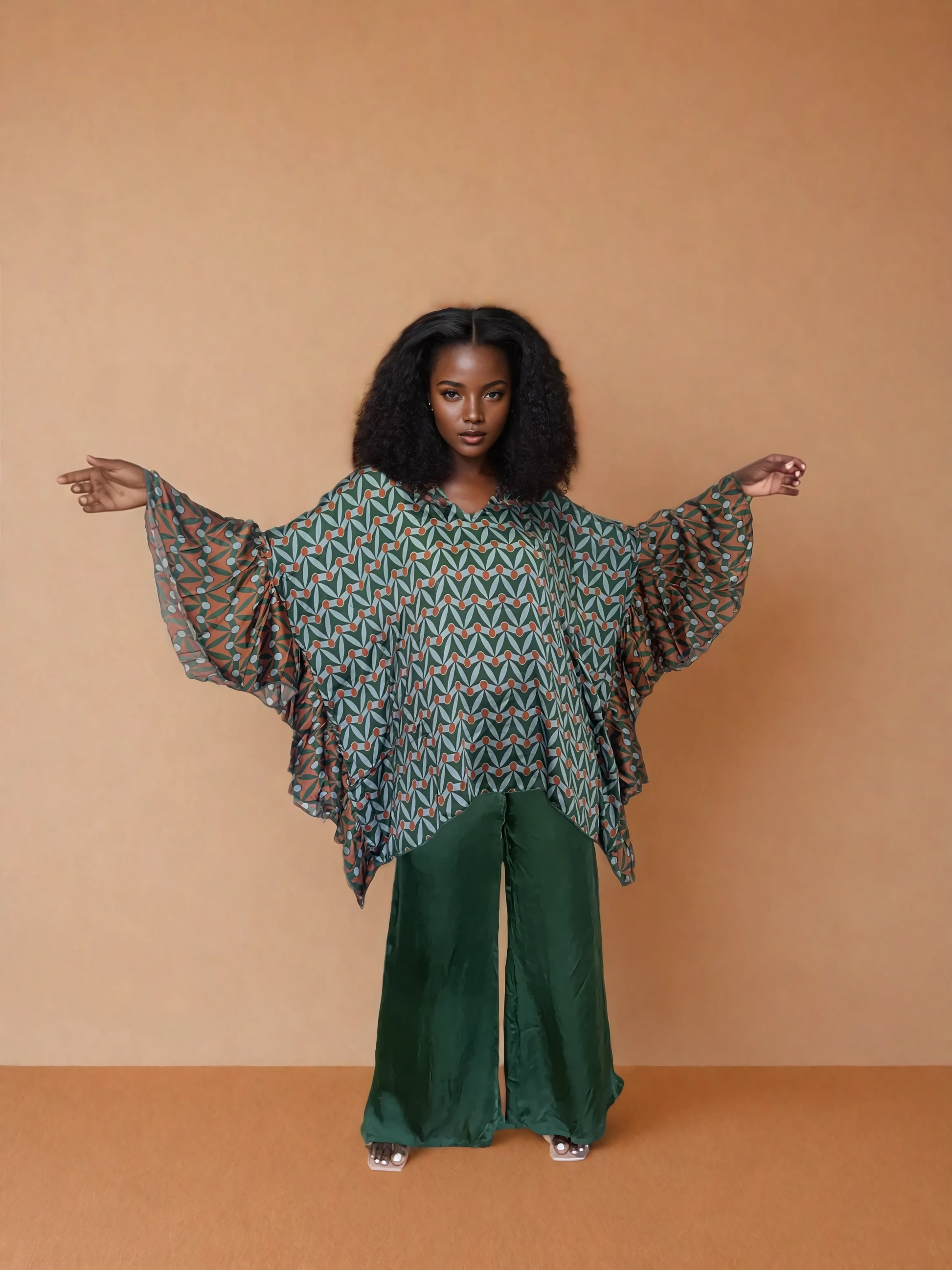 Become a divine feminine goddess in this unique kaftan with ruffled sleeves. The flowy silk inspired fabric feels like luxury. Choose from multiple prints.