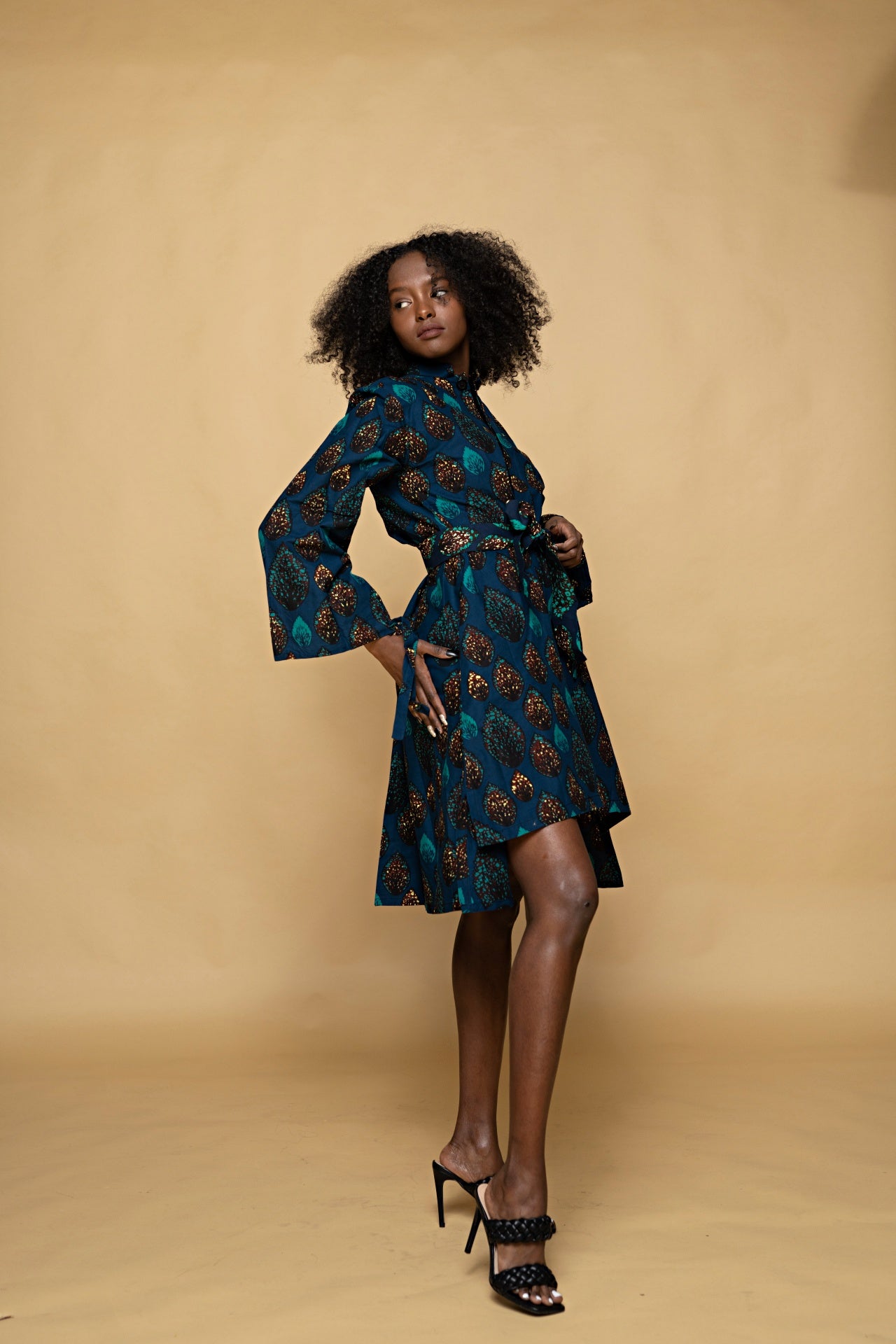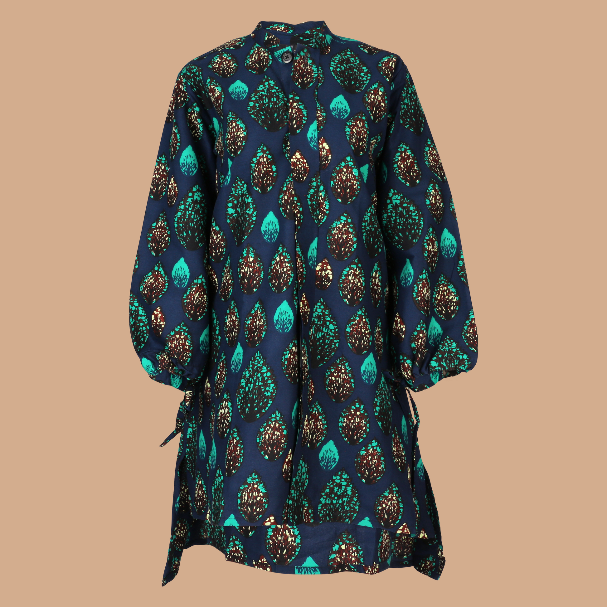 Who doesn't love a classic shirtdress? This one in the Fea African Print has all the sophisticated details… a mandarin collar, adjustable self-tie sleeves, hidden button, side pockets and high-low split hem. Wear belted, loose, or with your favorite denim jeans. This new classic is sure to be your go to for comfort and chic.