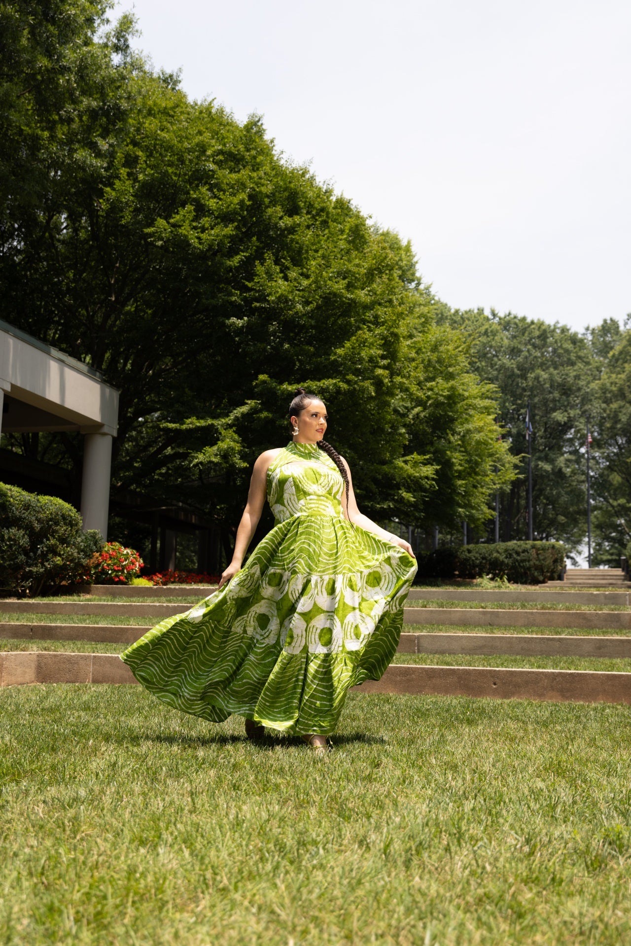Mafarki Green Àdìrẹ Hand Dyed Maxi Dress