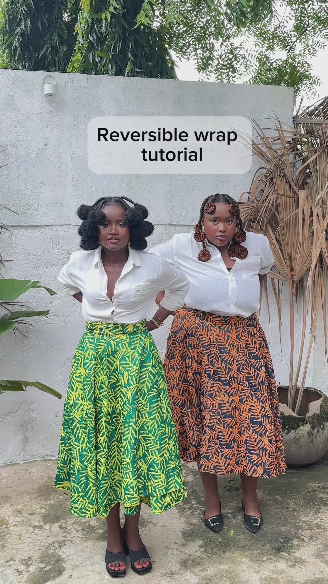 Two sides. One Skirt. The Palm Reversible Wrap Skirt lets you choose your rhythm. A bold, hand-dyed palm‑leaf African print on one side, and a rich, classic orange on the other. High-waisted and mid-length, it wraps and ties for a just-right fit that moves with your stride. The power is in your hands. Choose your size.