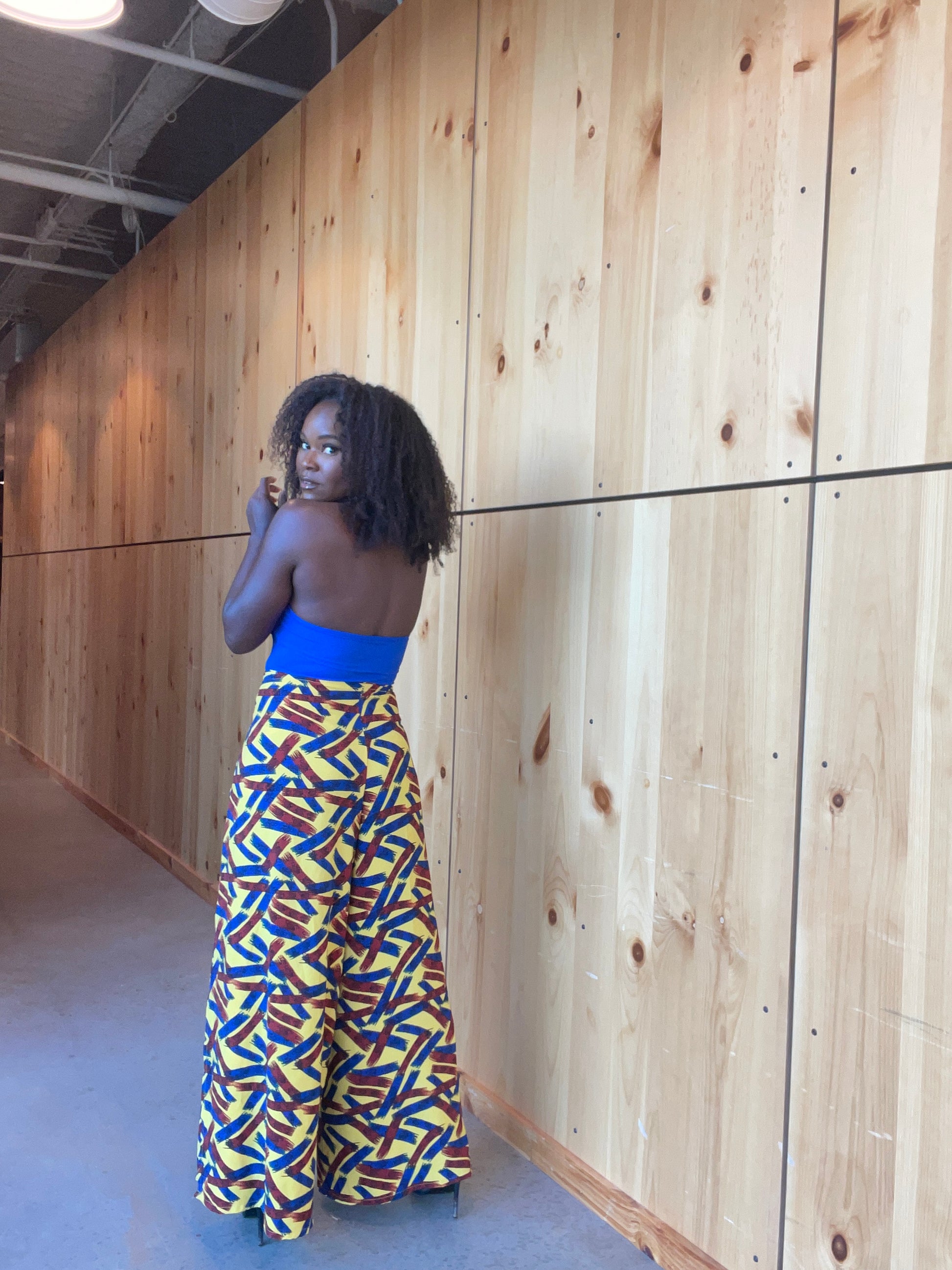 This versatile wrap pant has a major wow-factor. Crafted in a luxe crepe fabric in our Rume print, this pant features a hidden tie-up waist that cinches at the back and creates a halter shape to transform it into an eye-catching printed jumpsuit. With a dramatic flared leg, it is the perfect pant for any special occasion. The breathable fabric is lightweight and flowy, allowing you to move freely. This wrap pant is the perfect combination of functional and stylish.